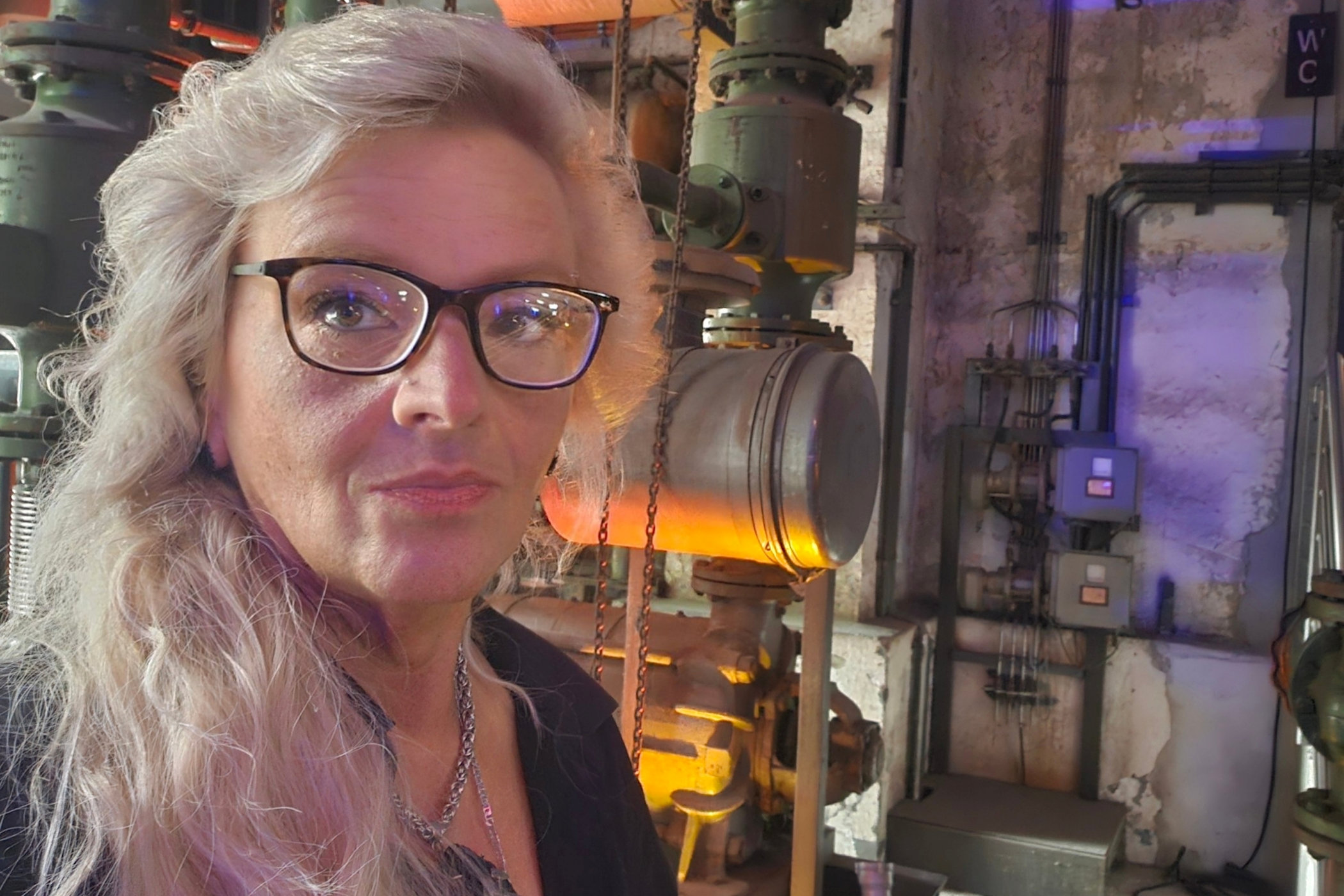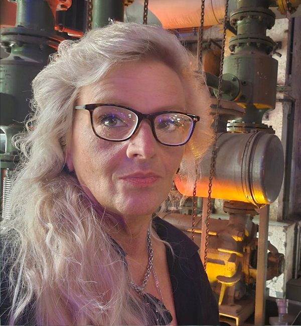 black-tech is a musician and visual artist. Growing up in the vicinity of the Oberhausen steelworks (Hüttenwerk Oberhausen (HOAG), later Thyssen Niederrhein (TNO), she was early on shaped by the images and sounds of heavy industry: the red-glowing sky during the tapping of the blast furnace, the rhythmic labor of the rolling mills, the monumental presence of steel, heat, and machines. This industrial landscape became a central element of her perception and later of her artistic expression.